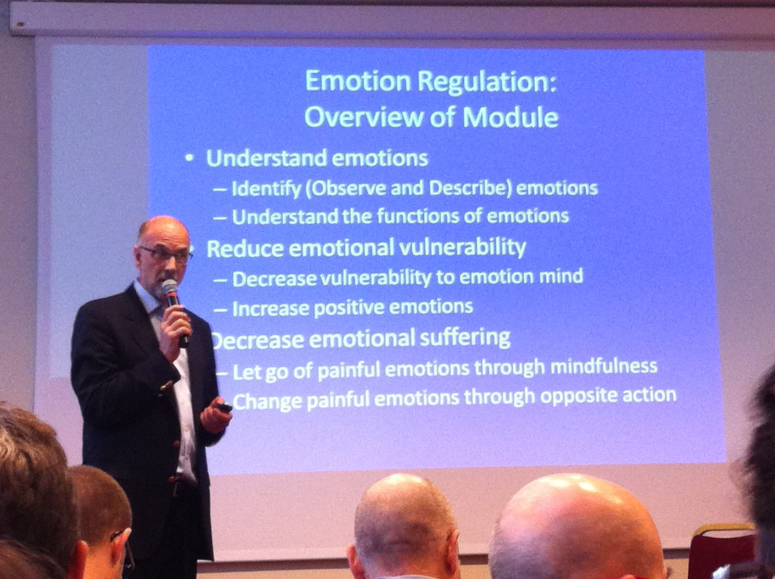 Grazie all’uso di esperienze di vita personali, racconti di momenti significativi del trattamento con i suoi pazienti, casi clinici, simulate e materiale video Swenson ha dedicato questi primi tre giorni intensivi a fornire una dettagliata panoramica della DBT, includendo storia ed evoluzione del modello, sua applicazione e dati di efficacia. Sono stati quindi presentati e discussi i principi generali del modello e la struttura del trattamento, con particolare attenzione sia alla sua declinazione all’interno dei gruppi (come da modello originario) sia fornendo indicazioni e suggerimenti utili all’interno di un setting di terapia individuale.