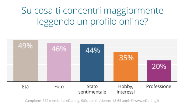 Tutti abbiamo almeno un profilo su un social network e i single probabilmente ne hanno uno anche su un sito di incontri. Ogni volta che riceviamo un nuovo contatto per prima cosa ci soffermiamo a leggere le informazioni personali contenute sul profilo. Perché? Per capire chi sono, a cosa si interessano, come si descrivono o come vogliono mostrarsi agli altri. Vi siete mai chiesti su cosa si concentrano maggiormente i vostri contatti leggendo il vostro profilo?