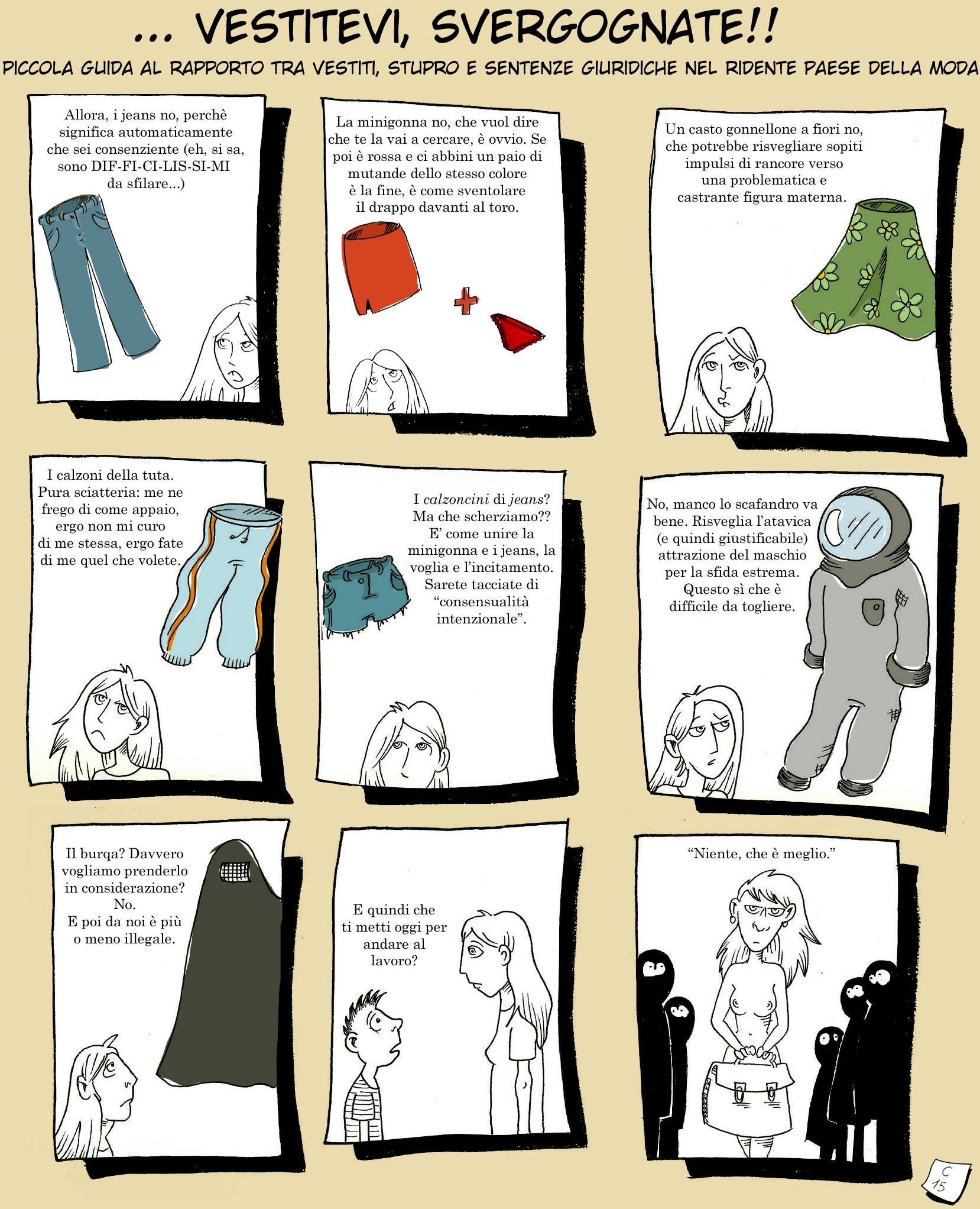 Piccola guida al rapporto tra vestiti, stupro e sentenze giuridiche nel ridente paese della moda.