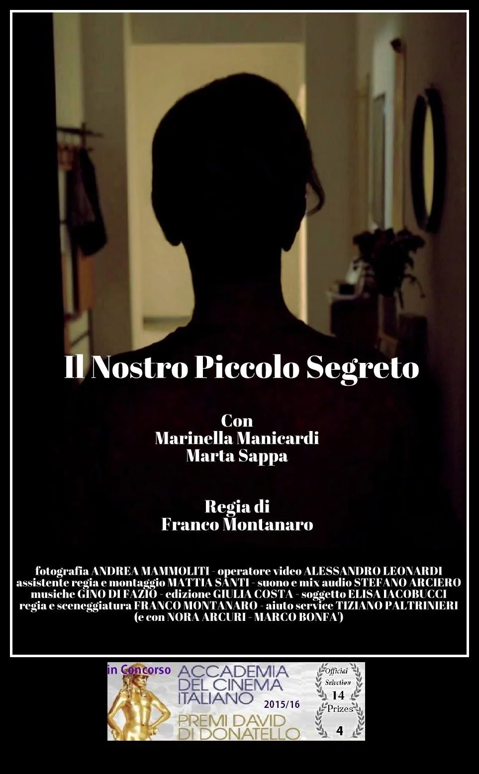 E’ attualmente visibile e votabile al concorso online fino al 29 Febbraio  http://www.cinemaitaliano.info/news/34313/cort-on-line-16-il-nostro-piccolo-segreto.html