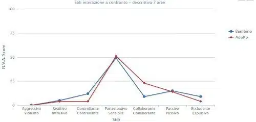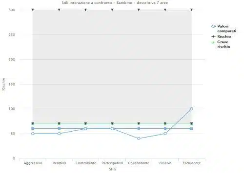 - Il secondo profilo permette di confrontare gli stili di interazione di caregiver e bambino rispetto alle soglie di rischio e grave rischio di comportamenti problematici differenziati nelle varie aree.