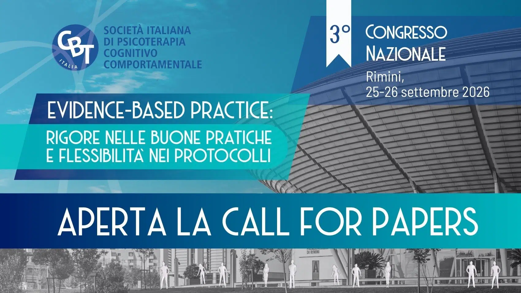 È aperta la call for papers per il 3º Congresso Nazionale di CBT-Italia dal titolo Evidence-based practice: rigore nelle buone pratiche e flessibilità nei protocolli, che si terrà il 25 e 26 settembre 2026 al Palacongressi di Rimini. L’invito è rivolto a clinici, ricercatori, allievi delle scuole di psicoterapia e studenti interessati a condividere i propri lavori nell’ambito della psicoterapia cognitivo-comportamentale e della ricerca clinico-scientifica.