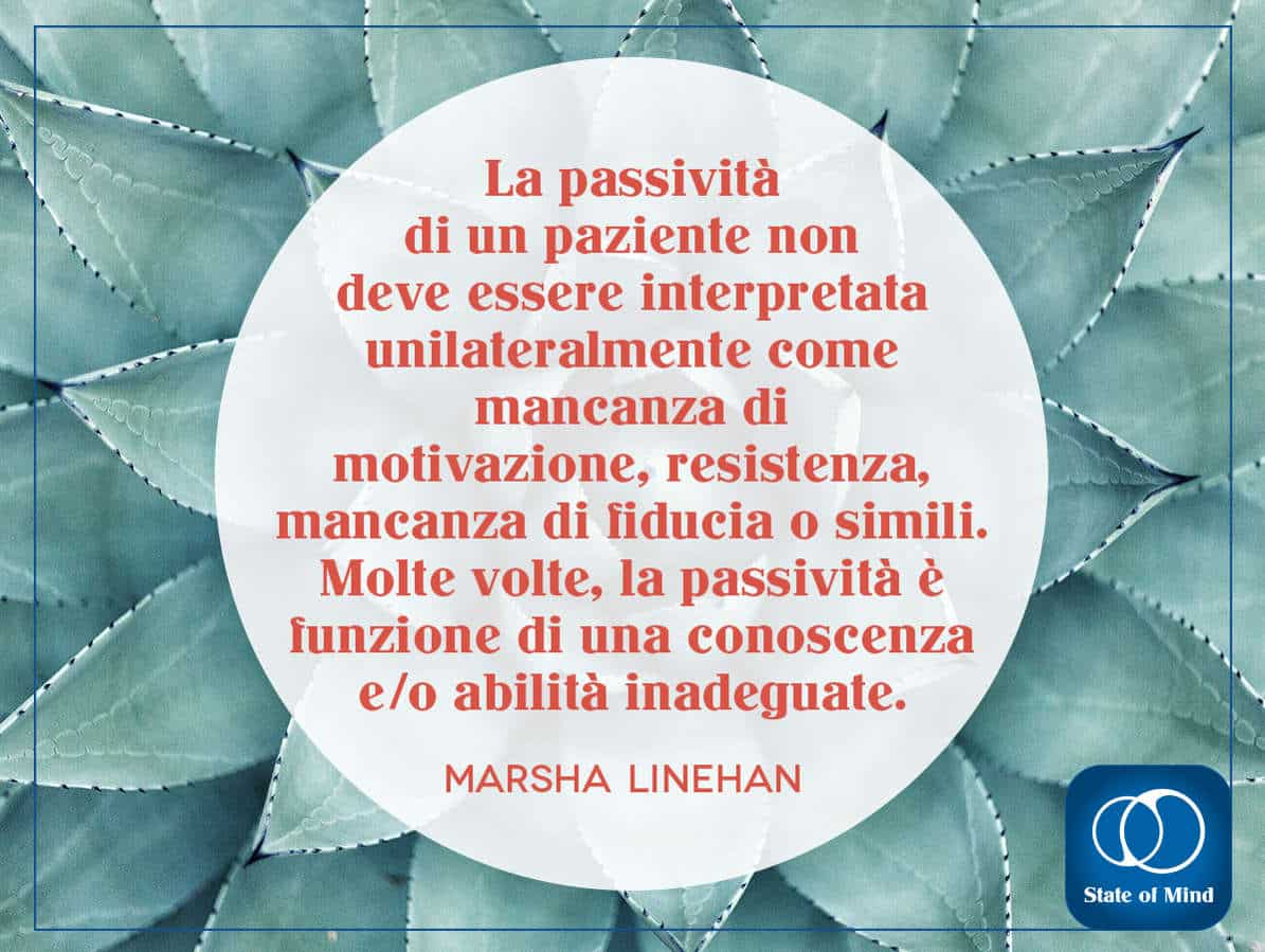 Ella intuì che prima di poter cambiare qualsiasi tipo di comportamento era necessario accettare la sofferenza, solo a quel punto si poteva cambiare. Così, intraprese un lungo processo di comprensione volto a individuare come unire due principi apparentemente opposti: l’accettazione della vita esattamente com’è e la necessità di cambiare apprendendo nuove modalità cognitive e comportamentali.