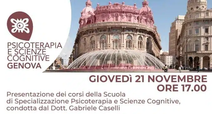 Psicoterapia e Scienze Cognitive Genova, Scuola di Specializzazione in Psicoterapia Cognitivo-Comportamentale, è lieta di invitarvi, per il giorno Giovedì 21 Novembre 2019 alla Presentazione della Scuola di Psicoterapia La presentazione, condotta dal Dott. Gabriele Caselli, avrà inizio alle ore 17.00 e durerà un’ora circa. La partecipazione è gratuita, ma è richiesta l’iscrizione all’evento compilando l’apposito modulo onlineCaratteristiche della scuola di psicoterapia